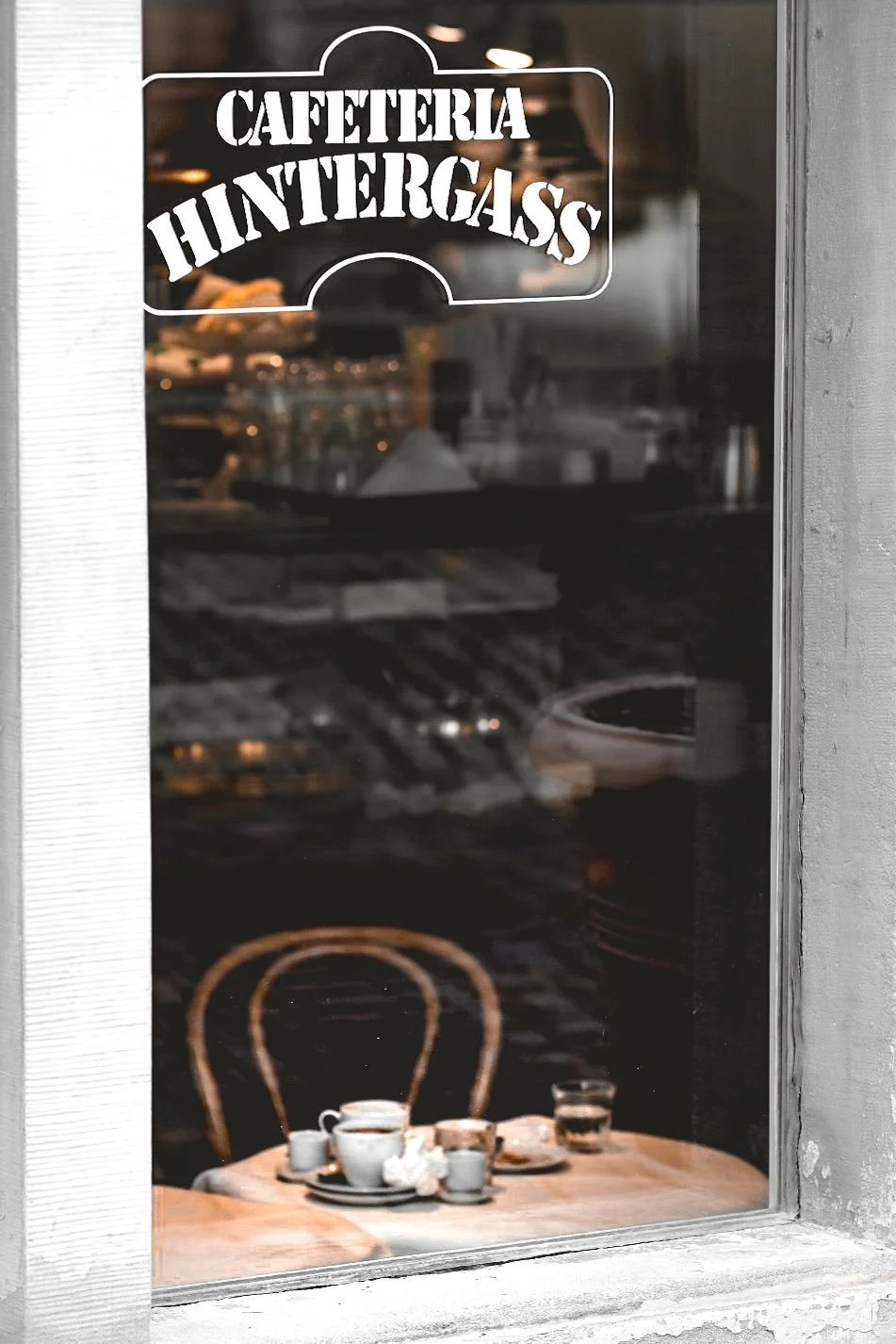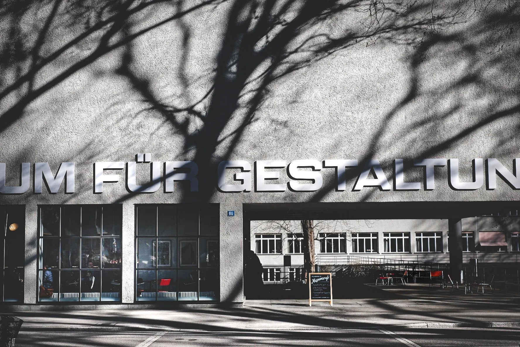 In the colorfully perfectly designed café of the museum ….